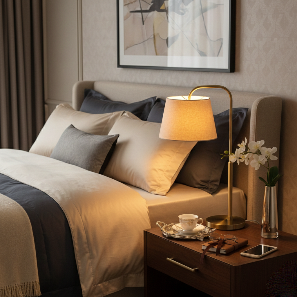 This desk lamp features a slim metal frame with an adjustable head that allows light to be directed where it is needed. The compact base makes it suitable for desks, worktables, and reading areas without taking up excess space. Its straightforward design supports everyday tasks such as reading, studying, or working from home, while fitting easily into modern interior settings.